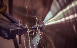 When the cymbal has opted its right thickness it goes to a hydraulic pressing machine where the bell of the cymbal is pressed.