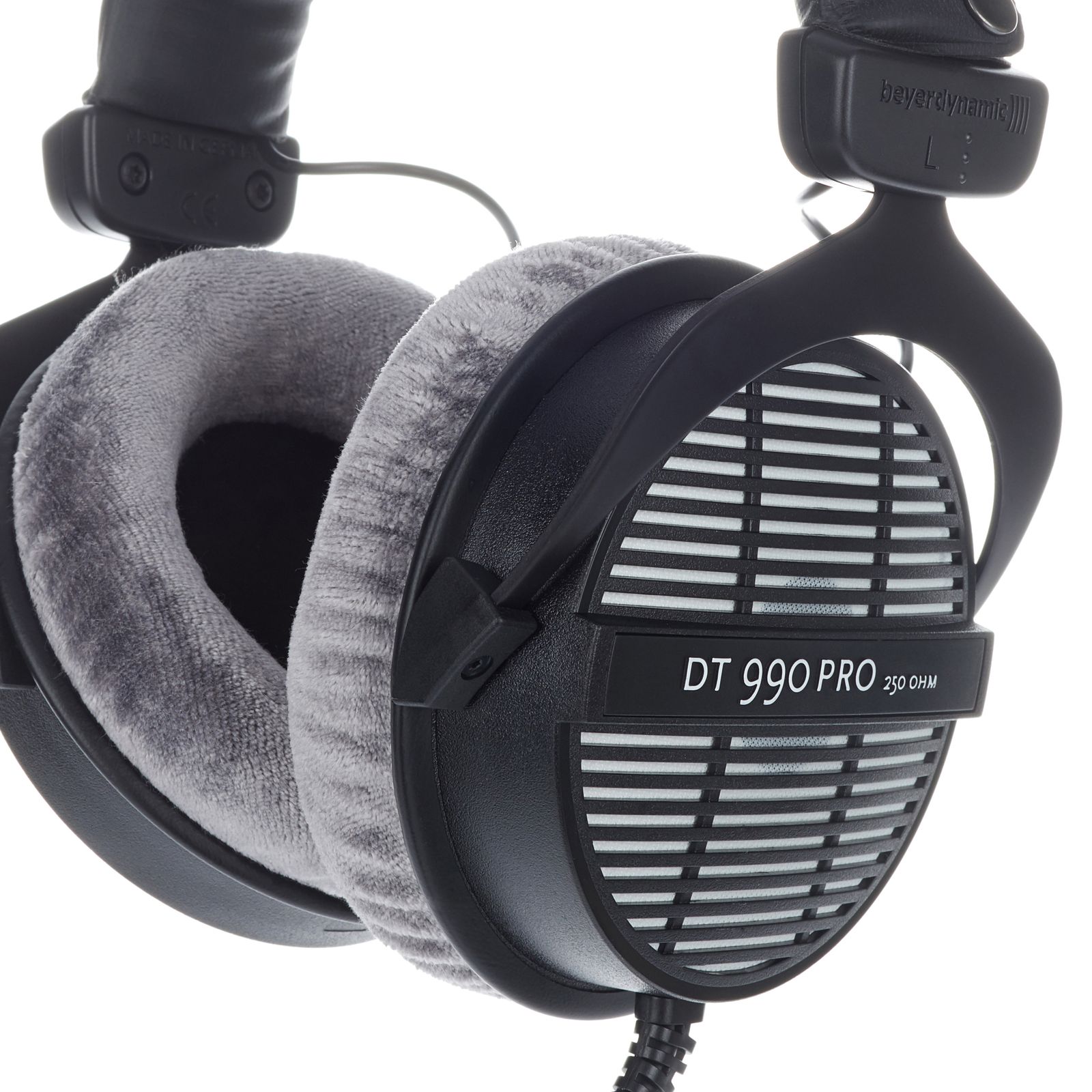 Der DT 990 Pro ist ein offener, diffusfeldentzerrter Kopfhörer von beyerdynamic, der sich seit seinem Start in den 80er-Jahren großer Beliebtheit erfreut. Der für Studioanwendungen konstruierte, dynamische DT 990 Pro besitzt eine ausgezeichnete Stereodarstellung und einen angenehmen Klang. Seine hellgrauen Velours-Ohrpolster sind nicht nur optisch ansprechend, sie bieten auch einen hohen Tragekomfort. Die Kabelführung des DT 990 Pro erfolgt einseitig über ein festinstalliertes 3m-Stereoklinkenkabel mit 6,3mm-Schraubadapter. Die Impedanz ist mit 250 Ohm vergleichsweise hoch, dennoch steht einer vernünftigen Wiedergabelautstärke an mobilen Geräten nichts im Wege.