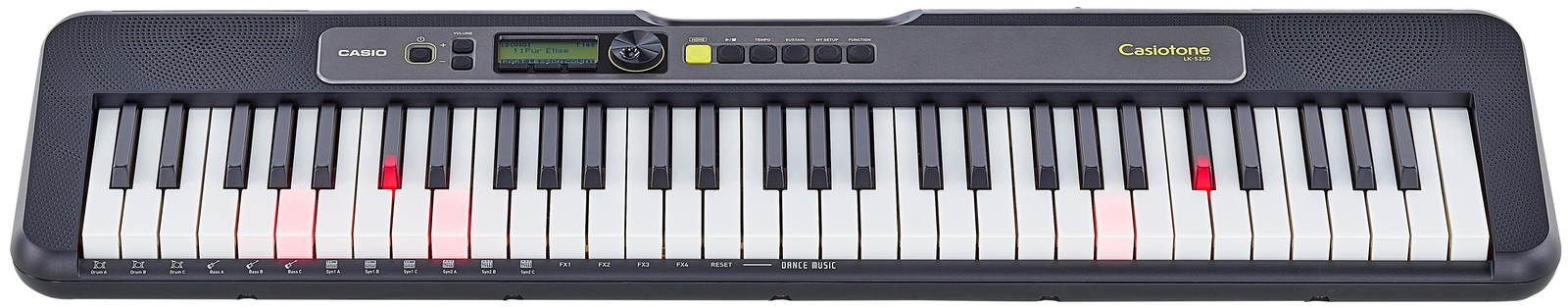 Das Erlernen des Keyboardspiels soll Spaß machen und einfach sein. Das LK-S250 hat dafür zahlreiche Sounds und Rhythmen zur Auswahl und bringt mit seinem Leuchttasten-System einen schnellen Lernerfolg mit sich. Neben Klavier und anderen klassischen Instrumenten bietet das Keyboard auch den cleveren Dance Music Mode, mit denen selbst der absolute Anfänger seine eigenen Dance-Tracks schnell und einfach realisieren kann. Zur Erweiterung des Repertoires lassen sich über die kostenlose Chordana Play-App beliebig viele Songs in das Lernsystem des Keyboards integrieren. So kann das LK-S250 an die unterschiedlichsten Musikvorlieben und Lernstufen angepasst werden.
