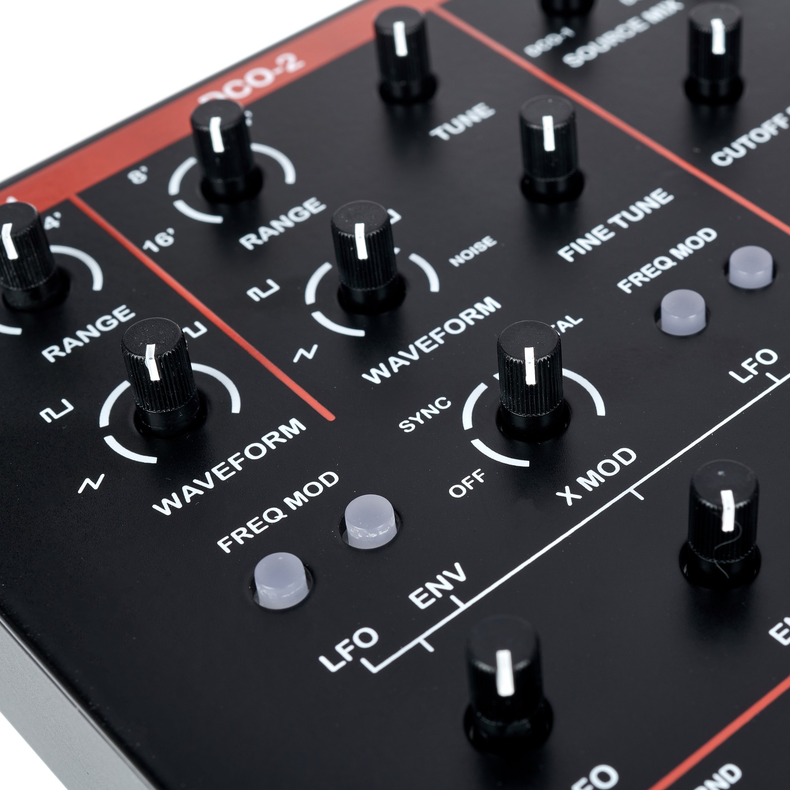Der Dtronics DT-200 V3 ist ein moderner Nachbau des Roland-Programmers PG-200, der seinerzeit für die Analogsynthesizer JX-3P, MKS-30 (Planet S) und GR-700 angeboten wurde. Speziell der JX-3P erfreut sich immer noch großer Beliebtheit, doch der Programmer PG-200 ist nur schwer zu bekommen. Erst mit dessen Hilfe ließen sich diese drei Roland-Synthesizer vernünftig bedienen. Der Dtronics DT-200 V3 übernimmt genau diese Aufgabe. Er besitzt die gleiche Funktionalität und Anordnung der Bedienelemente, jedoch gibt es beim DT-200 V3 anstelle der alten Schiebeschalter zuverlässige, mit LEDs beleuchtete Taster. Der DT-200 V3 wird wie sein Vorbild über den separaten Programmer-Port an den Synthesizer angeschlossen, worüber auch die Stromversorgung erfolgt. Das dafür benötigte, unübliche 6-Pin-Kabel liegt dem Gerät bei.