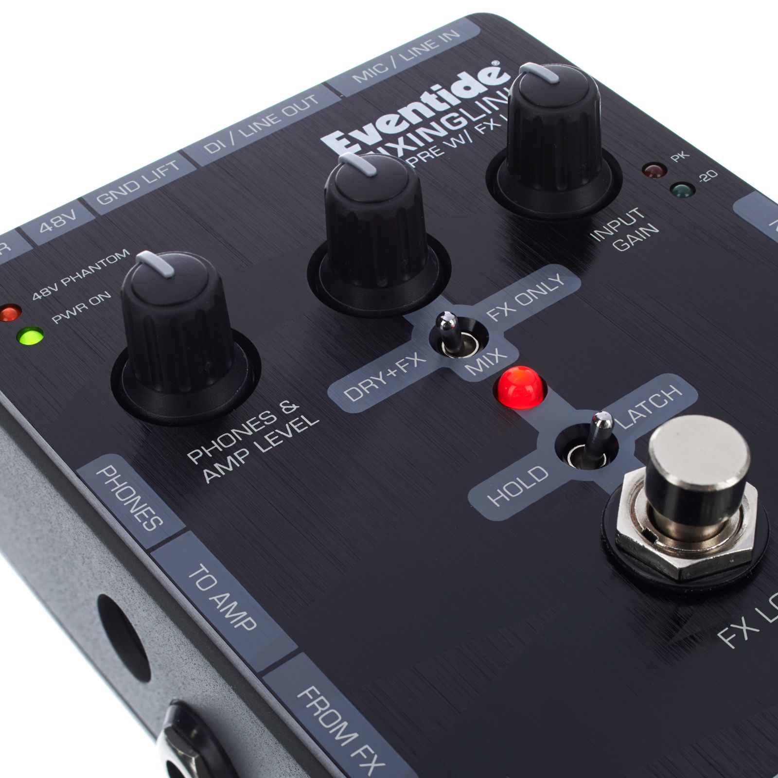 Mit seinen vielen gleichzeitig nutzbaren Eingängen lässt sich der Eventide Mixing Link Preamp als ein rudimentärer und ultra-kompakter Mixer nutzen, der alle Eingangssignale summiert und an eine PA-Box schickt. Weitere Zusatzfunktionen ergeben sich durch eine kreative Nutzung der Send/Return-Buchsen der Effektschleife, die sich ebenfalls als reguläre Ein- und Ausgänge verwenden lassen. So wird über den Fußschalter beispielsweise A/B-Switching zwischen zwei Gitarren (am Instrumenteneingang und FX-Return) oder auch zwischen zwei Verstärkern (am Amp-Out und FX-Send) möglich. Bei all diesen komplexeren Funktionen ist nicht zu vergessen, dass sich der Mixing Link Preamp auch als einfacher Vorverstärker, DI-Box und Reamping-Box einsetzen lässt.