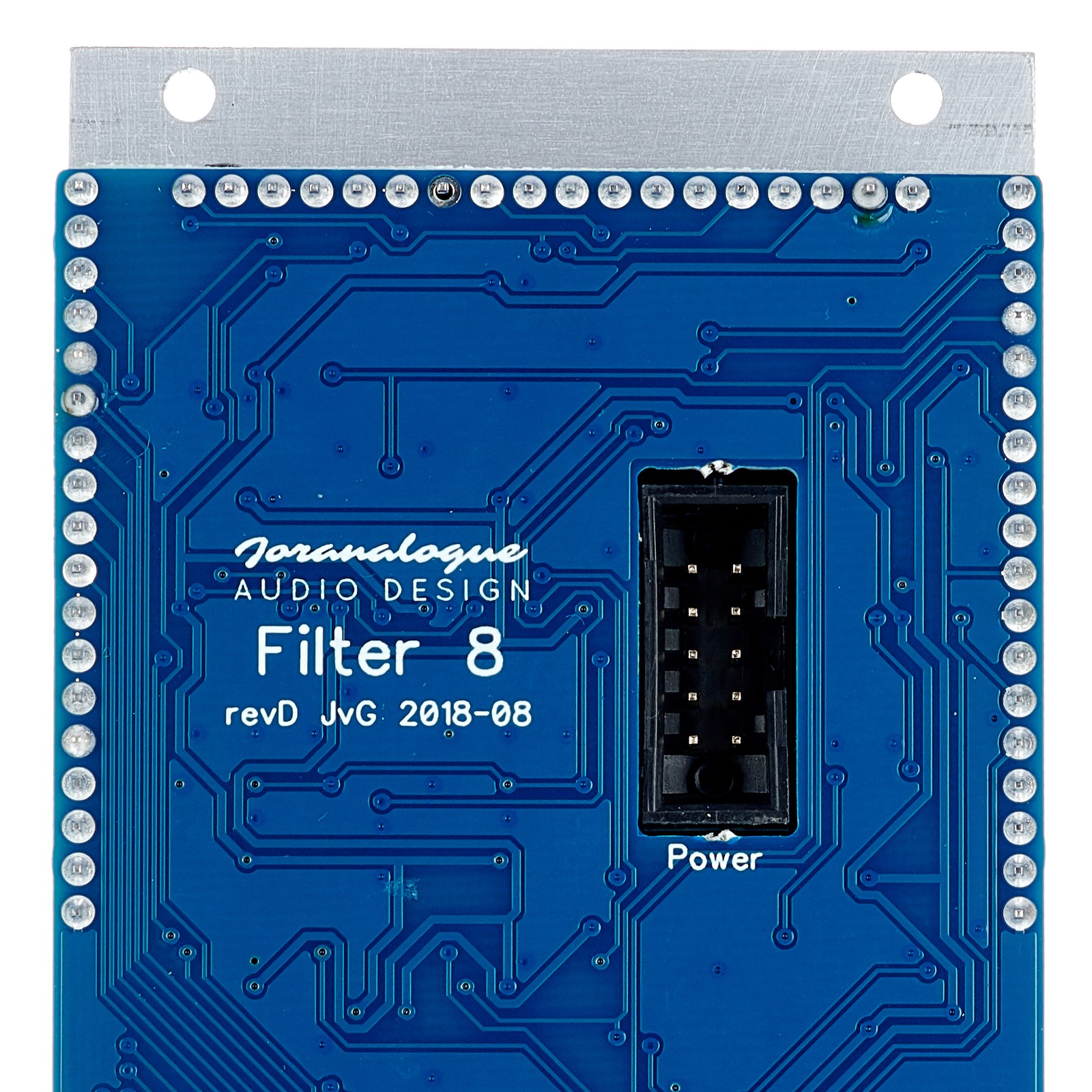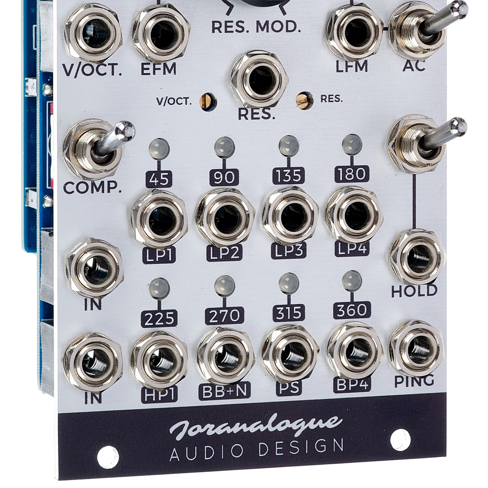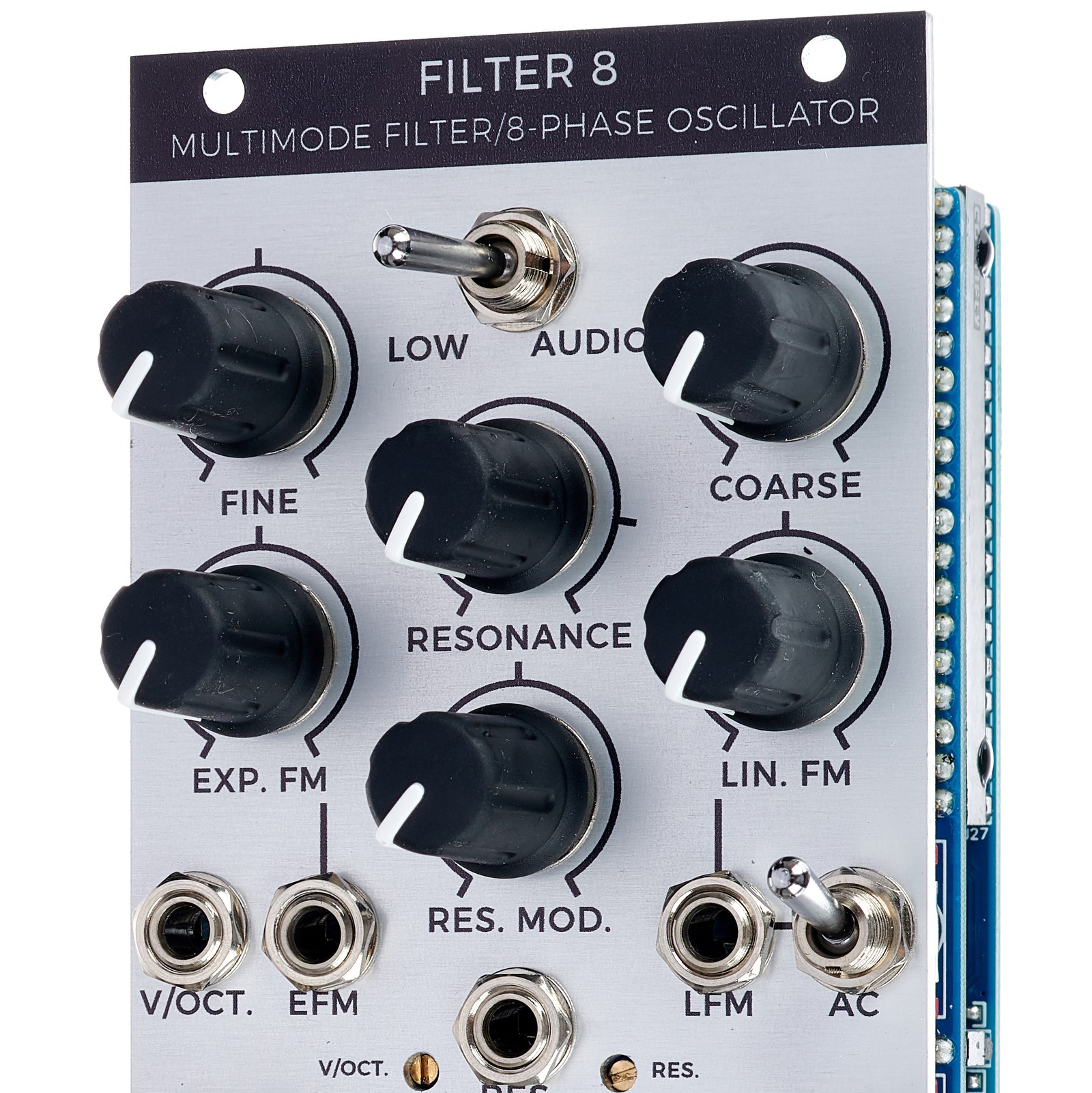 Das OTA-basierte Filter bietet vier Tiefpässe mit Flankensteilheiten von 6 dB bis 24 dB sowie einen Hochpass, einen Bandpass, einen Bandboost mit Notch und einen Phase Shifter. Jeder Filterausgang ist um 45° zum vorangehenden versetzt. Werden mehrere Ausgänge extern gemischt, lassen sich z. B. über Formantbildung neue Filtermodi erzielen. Die Filterschaltung ermöglicht eine saubere Selbstoszillation, bei der an allen acht Ausgängen ein stabiler Sinus erzeugt wird. Diese Signale sind ebenfalls in der Phase versetzt, sodass sich beim Zusammenmischen auch hier unterschiedliche Effekte ergeben. Die Oktavspreizung kann über einen Trimmer justiert werden. Einzelne Ausgangssignale können außerdem auch für Self-FM oder Feedback Drive eingesetzt werden, was härtere Klänge ergibt.