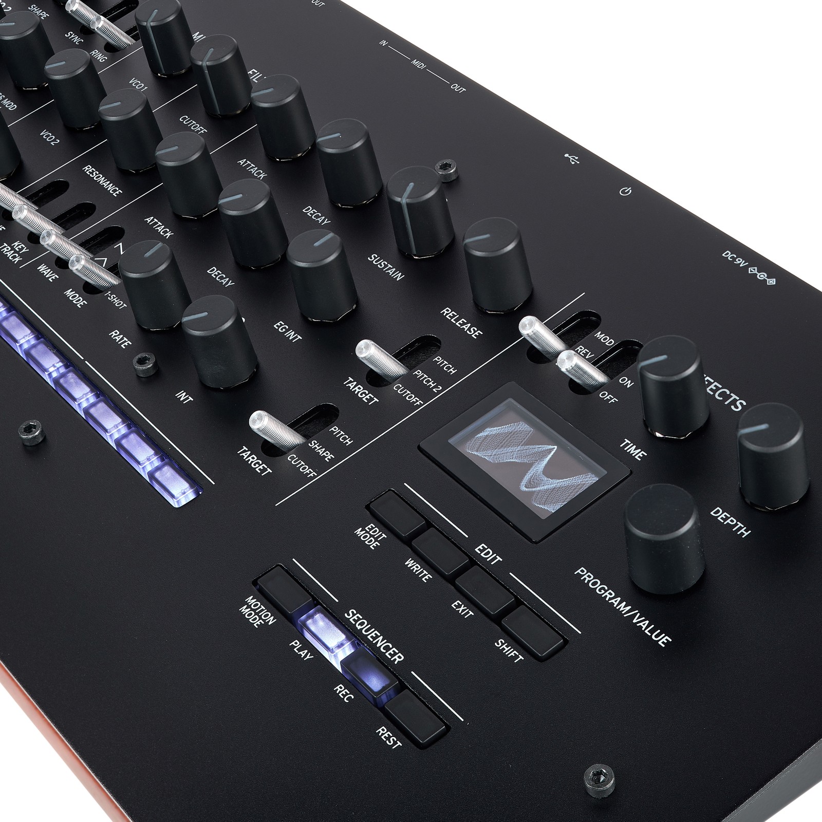 • 2 analoge VCOs und digitaler Multi-Engine-Oszillator (Noise, FM, User-Wavetables) pro Stimme