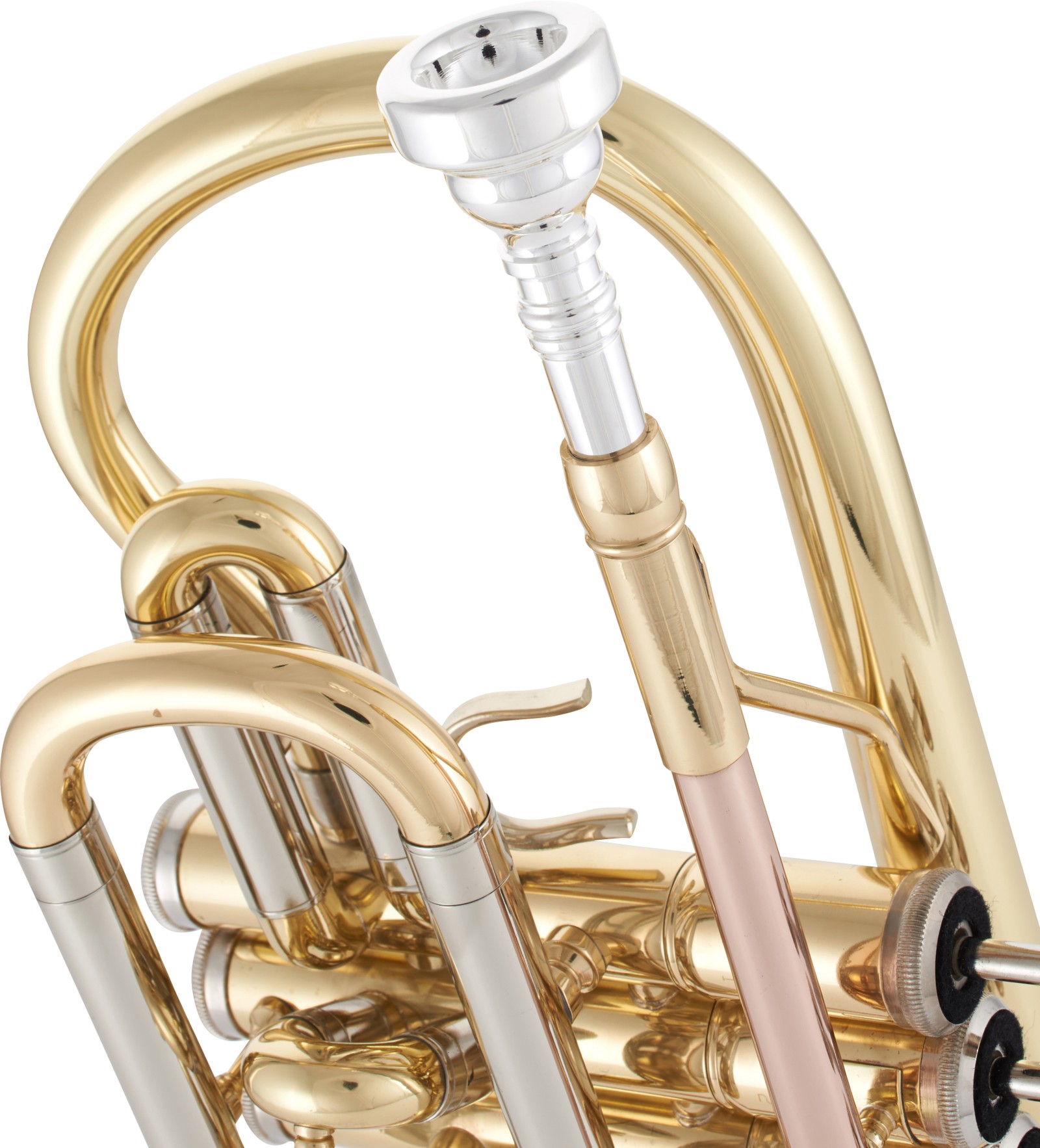 Das Kornett umschmeichelt die Zuhörer mit seinem weichen und warmen Klang und prädestiniert sich damit insbesondere für melodische und lyrische Passagen. Dabei ordnet es sich klanglich zwischen der glänzenden Trompete und dem deutlich fülligen Flügelhorn ein. Obschon die Instrumente sich hinsichtlich ihrer Dimensionen nur geringfügig unterscheiden, muss für die stimmige Intonation und Klangausbeute selbstredend auch das Mundstück den speziellen Anforderungen entsprechen. Wenn du Mundstücke für Kornett kaufen möchtest, findest du in unserem riesigen Sortiment ganz sicher deine ultimativen Kandidaten. Wir führen eine riesige Auswahl an Kornettmundstücken aus den Sortimenten der weltbesten und renommiertesten Marken.