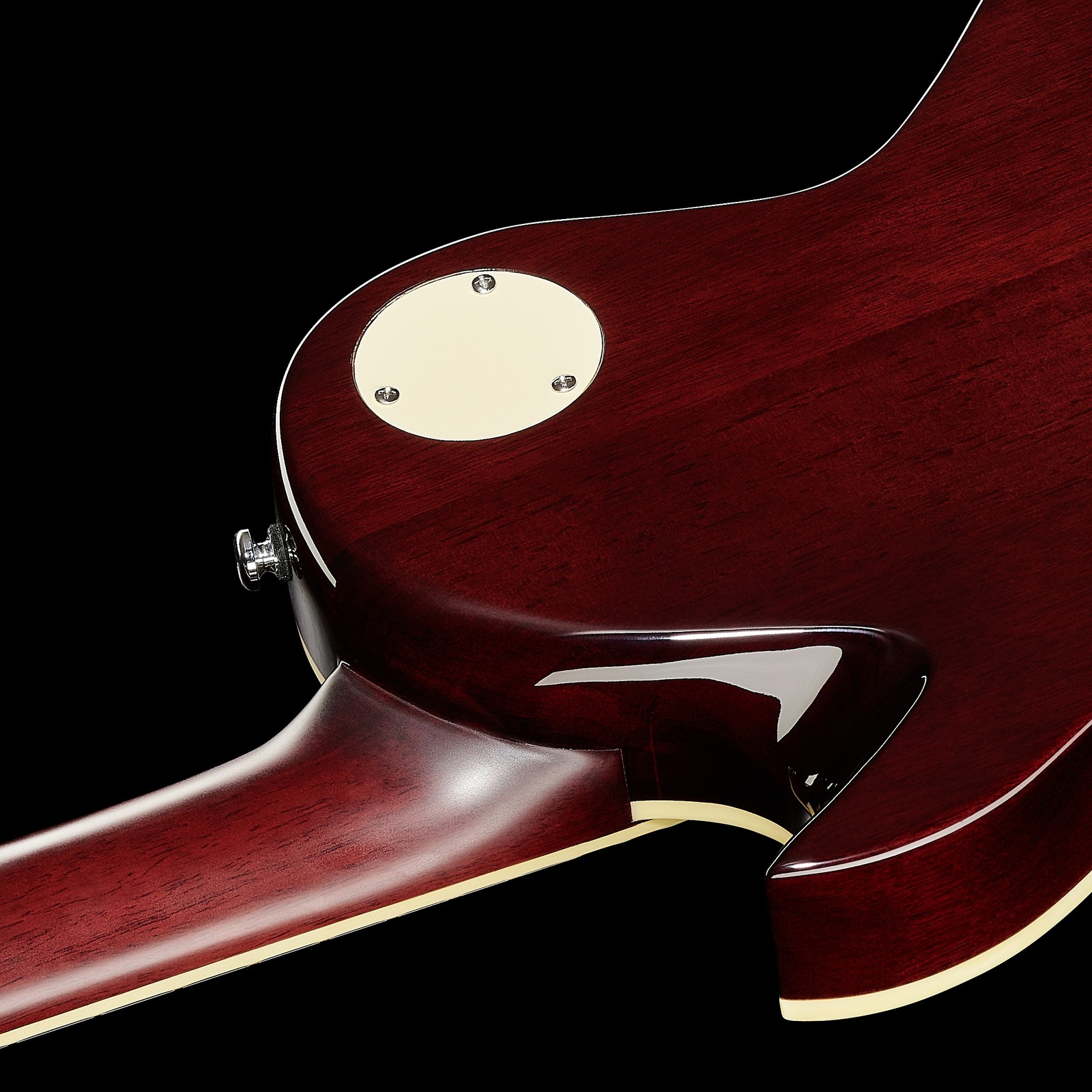 Die Basis für den charakteristischen Klang dieser Singlecut bildet ein Korpus aus Mahagoni, der mit einer gewölbten Ahorndecke mit Riegelahornfurnier verleimt und mit einem stilechten Burst-Finish versehen wurde. Das sorgt für ein kräftiges Sustain, wie man es von diesem Typ Gitarre einfach erwartet und auch geliefert bekommt. Eingeleimt wurde ein Hals aus Mahagoni, der mit einem schlanken C-Profil und den 22 Medium-Jumbobünden auf dem Ebenholzgriffbrett mit seinen abgerundeten Kanten für eine optimale Bespielbarkeit sorgt. Die zwei AlNiCo-5-Humbucker übertragen den warmen und sustainreichen Grundsound mühelos an den Amp, sie werden über je einen Volume- und Toneregler sowie einen knackig einrastenden Dreiwegeschalter gesteuert. Die verchromte Hardware mit der ToM-Brücke, dem klassischen Tailpiece sowie den Sire-Premium-Klemmmechaniken an der Kopfplatte halten die L7 in bester Stimmung.