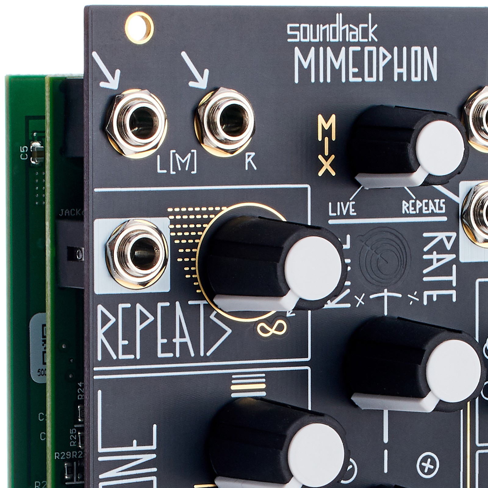 Das Mimeophon von Make Noise ist ein Stereo-Delay und ein kreativer Klangmanipulierer in einem. Der Ausdruck „Mimeophon“ kommt aus dem Griechischen und setzt sich aus den Begriffen "mimeo" für Wiederholung und "phon" für Klang zusammen. Mit seinem eingebauten Filter und dem Hall-Effekt enthält es einige Features, die es zu einem einzigartig klingenden und sehr gut anspielbaren kleinen Synthesizermodul machen. Die Zone-Funktion macht es zu einem Looper mit mehreren Layern zum Kreieren von klanglichen Texturen. Hiermit lassen sich Delay-Zeiten bis zu 41 Sekunden umsetzen. Mit dem Rate-Regler lassen sich die Zeiten noch genauer einstellen. Für die Rate-Funktion gibt es zwei spannungsgesteuerte Eingänge: einen, mit dem die gesamte Bewegung in einer Zone gesteuert werden kann, und einen weiteren, mit dem ein feinerer Stimmungswechsel erzeugt und das Mimeophon als Synthesizer in der Zone Null gespielt werden kann. Daneben gibt es die Funktionen Repeat, Color und Halo. Mit letzterem lässt sich der Klang mit einer Art Nachhall versehen.
