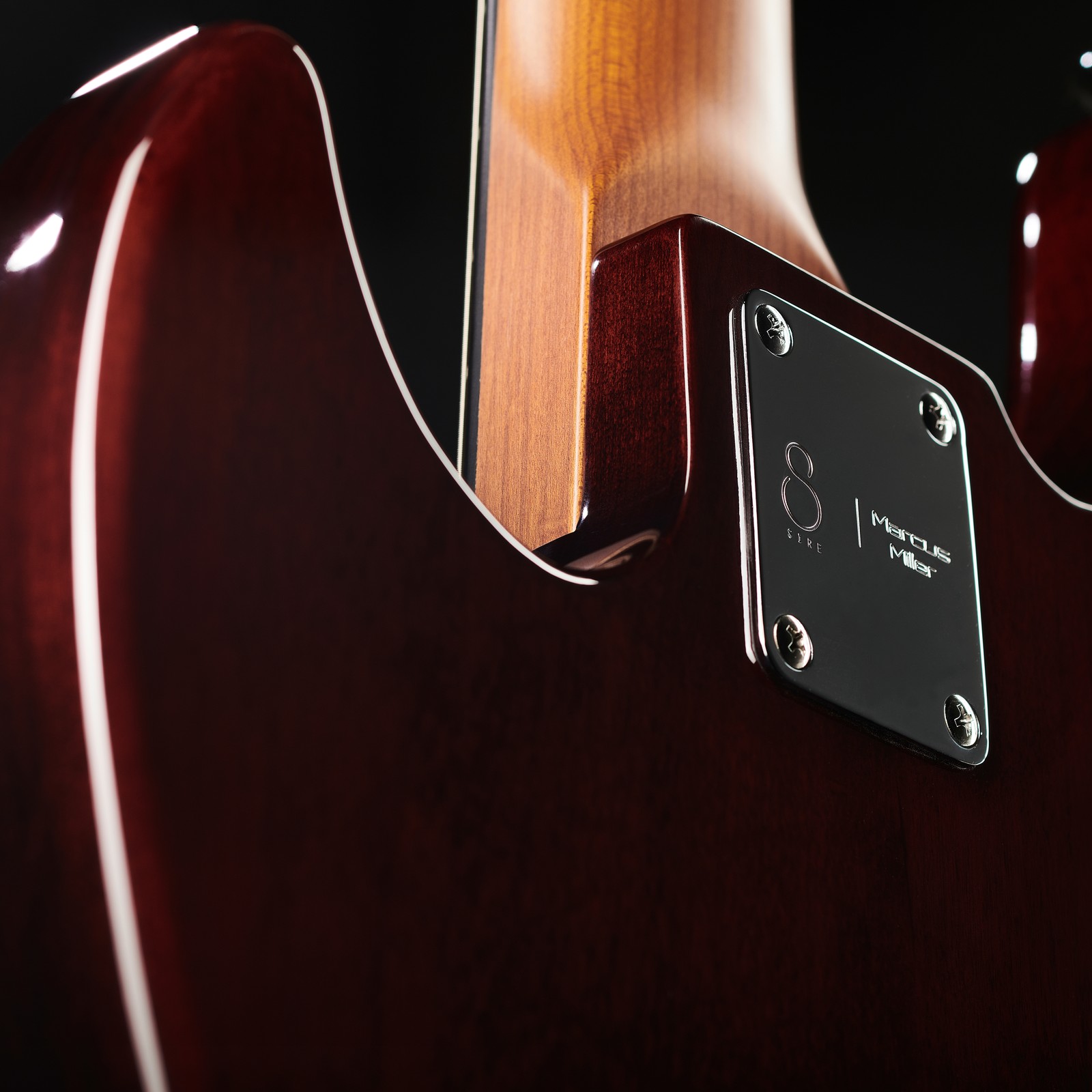 „Never Change A Running System“ ist eine alte Weisheit und dies gilt auch für den J-Bass. Eine Korpus aus Erle und ein Hals bzw. Griffbrett aus Ahorn habe sich über Jahrzehnte bewährt und kommen auch beim Sire V5 zum Einsatz. Durch ein thermisches Verfahren (Roasted) werden Hals und Griffbrett deutlich unempfindlicher gegenüber klimatischen Schwankungen und bekommen einen schönen Karamell-Ton. Weitere Optische Highlights sind das Tobacco Burst Finish und die coolen Blockinlays des Griffbretts. Die hauseigenen Marcus Vintage-J Revolution Jazz Single Coils bilden die klangliche Zentrale des V5. Ganz wie beim großen Vorbild hat jeder Tonabnehmer seinen eigenen Volume-Regler und für beide zusammen gibt es eine passive Tonblende, um den Sound den eigenen Wünschen anzupassen.