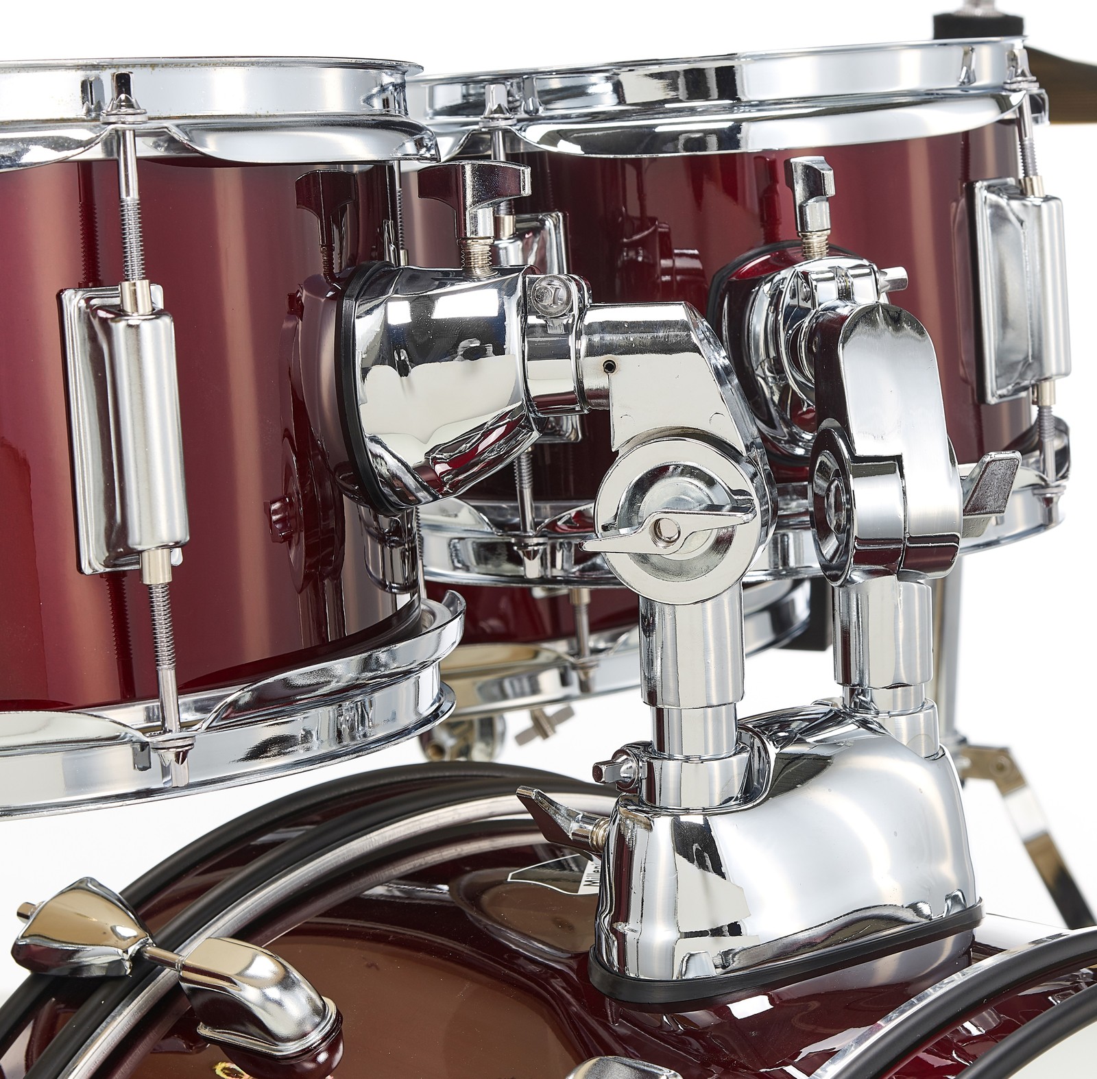 Egal ob der Nachwuchs nur ungezügelt zu den eigenen Lieblingssongs jammen möchte oder bereits die ersten Unterrichtsstunden anstehen – das Millenium Focus Junior Drum Set Red macht alles locker mit. Dabei braucht sich dieses Set keinesfalls im Kinderzimmer zu verstecken. Mit seinen zeitlosen, dunkelroten Kesseln, den dezent-stylischen Wappenlogos und der verchromten Hardware wertet es jeden Raum optisch auf. Das Millenium Focus Junior Set sieht nicht nur genauso professionell aus wie seine größeren Brüder, es klingt auch genauso gut. Die Eltern wird’s freuen – Töpfe, Pfannen und Schüsseln haben als Schlagzeugersatz endlich ausgedient!
