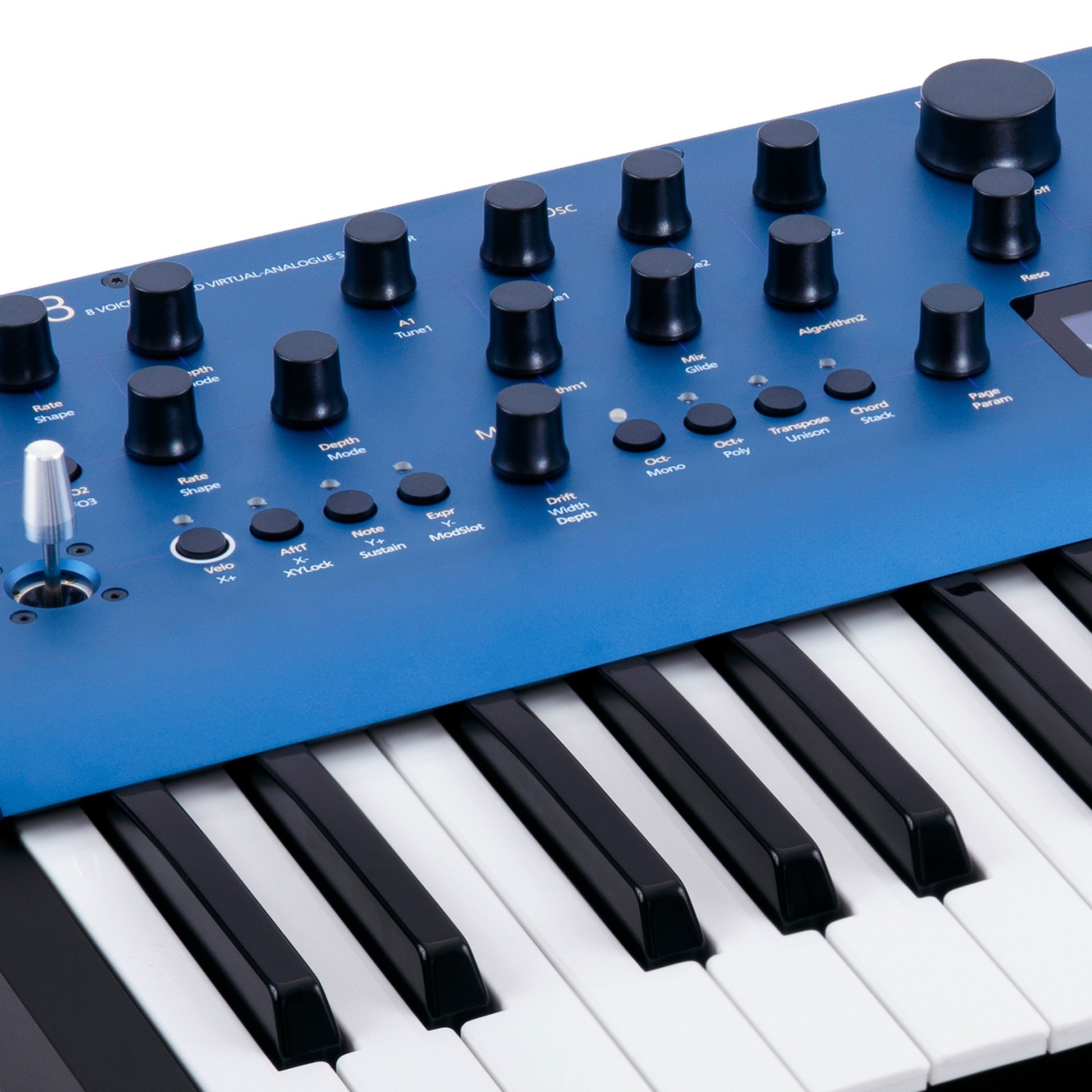 Beim Cobalt8 handelt es sich um einen analog-virtuellen Synthesizer – sprich: um einen Hybrid-Synthesizer, der von analogen Schaltungen und digitalen Bauelementen Gebrauch macht. Ausgestattet ist er mit zwei Oszillatorgruppen mit wählbaren Algorithmen in eigenständigen Modulen, die somit mehrere Oszillatormodulationen ermöglichen. Des Weiteren besitzt er ein vierpoliges, morphbares Ladder Filter, einen Arpeggiator, einen 64-stufigen Step-Sequenzer und drei unabhängige DSP-Effekte. Er ist achtstimmig polyphon und besitzt 37 anschlagsdynamische Tasten mit Aftertouch. Mit dem Cobalt8 präsentiert Modal Electronics einen vielseitigen Synthesizer, der das volle Potenzial aus analoger und digitaler Technik schöpft und sich damit bestens für warme, klassische Analogsounds sowie für moderne, digitale Klänge eignet.