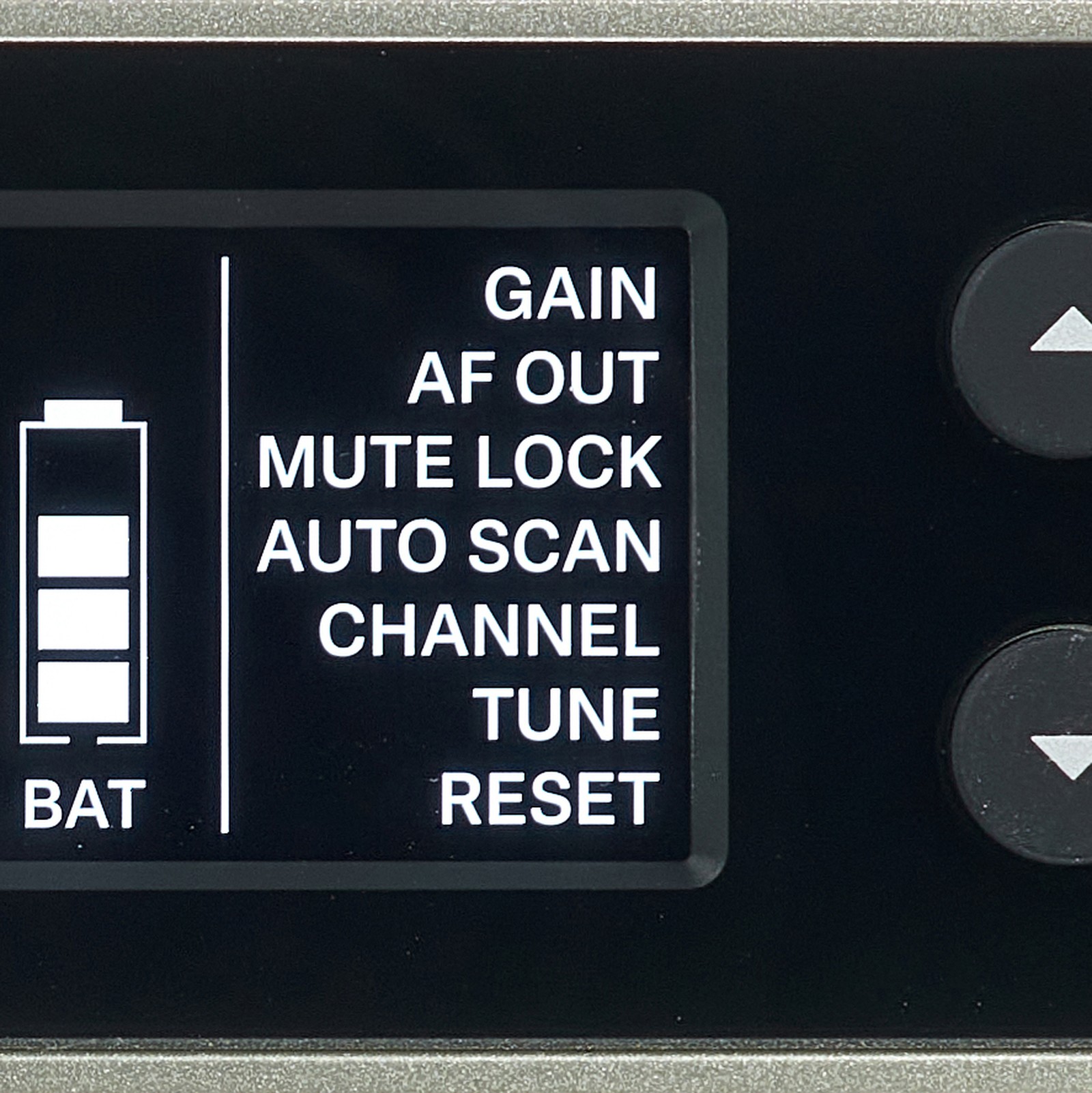 Damit Präsentationen mit sehr zurückgenommenen Passagen bis hin zu wahrem Fortefortissimo möglich sind, hat Sennheiser den Sender EW-D SKM-S mit einem Dynamikbereich von 134dB ausgestattet, wobei der Audio-Frequenzgang mit 20 bis 20000Hz nahezu den gesamten menschlichen Hörbereich abdeckt. Gefunkt wird im Spektrum zwischen 520 und 576MHz. Wer nun gespannt ist, wie das Set klingt, nutzt die aufschraubbare Mikrofonkapsel, fixiert die zwei kleinen Stummelantennen an der Empfängerrückseite, versorgt diesen über das Netzteil, das übrigens inklusive Länderadapter anreist, mit Strom und legt die beiden mitgelieferten AA-Batterien in den Handsender ein. Die Einrichtung kann man praktisch der EW-D-Smart-Assist-App überlassen. Eine Mikrofonklemme MZQ 1 sowie ein Rackmount-Set sind im Lieferumfang enthalten. Die beiliegende Wechselkapsel besitzt die Richtcharakteristik Superniere, sodass seitliche Störgeräusche weitgehend unterdrückt werden.