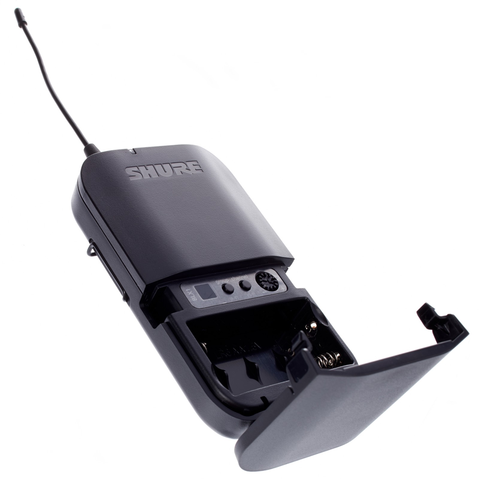 Das BLX14R/B98 ist ein hochwertiger Spezialist für Holz- und Blechbläser sowie Percussionisten. Geeignet ist das System für Musiker und Verleihfirmen. Insbesondere an Blas- und Percussioninstrumenten sorgt die Klemme dank ihres soliden Sitzes für größtmögliche Bewegungsfreiheit. Auch Gitarristen oder Bassisten mit Tonabnehmern an ihren Instrumenten können es verwenden, wenn sie ein Instrumentenkabel mit TA4F-Stecker ans Beltpack anschließen. Der Taschensender kann mit seinem Gewicht von 218 Gramm gut am Körper untergebracht werden. Er ist 110 mm hoch, 64 mm breit und 21 mm tief. Sein Gehäuse ist aus ABS-Kunststoff gefertigt. Die Sendestrecke ist leicht zu bedienen. Auf der Bühne haben die Akteure den Überblick über den Batteriezustand. Leuchtet die LED am Sender rot, halten die Batterien immerhin noch etwa eine Stunde.