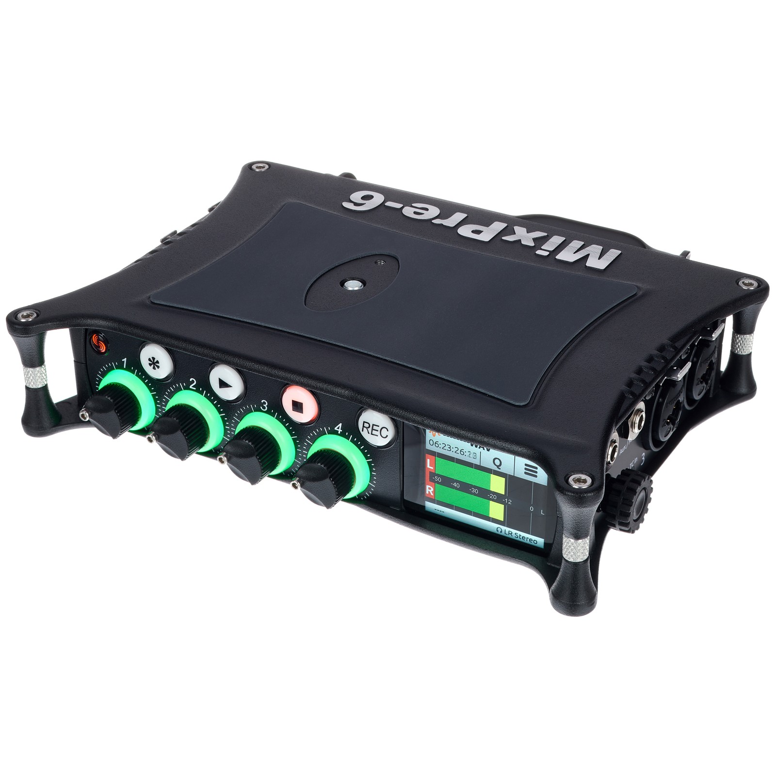 Der MixPre-6 II hat viele Funktionen an Bord, die speziell im Bereich der professionellen Film- oder TV-Produktion benötigt werden: Zum Beispiel kann der MixPre-6 II einen Timecode generieren oder von der Kamera auslesen (über den HDMI-TC-Eingang); spezielle Schraubgewinde erlauben die Montage des Recorders zwischen Kamera und Stativkopf; der dafür benötigte Innensechskantschlüssel ist dabei sicher hinterm Batteriefach am MixPre-6 II verstaut. Diese Features und viele weitere Funktionen machen den MixPre-6 II zu einem waschechten Profiwerkzeug. Aber auch für den Recording-Novizen ist er interessant, denn der MixPre-6 II ist – dank Basic-Modus und optionalen Plug-Ins – in der Lage, mit dem Anwender mitzuwachsen.