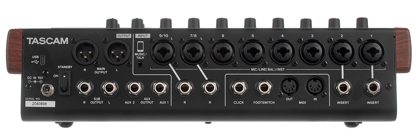 - 8 x Mikrofon-/Line-Eingang Combo XLR/Klinke 6,3 mm (Kanäle 1-6, 7, 9 als Instrumenteneingänge nutzbar)