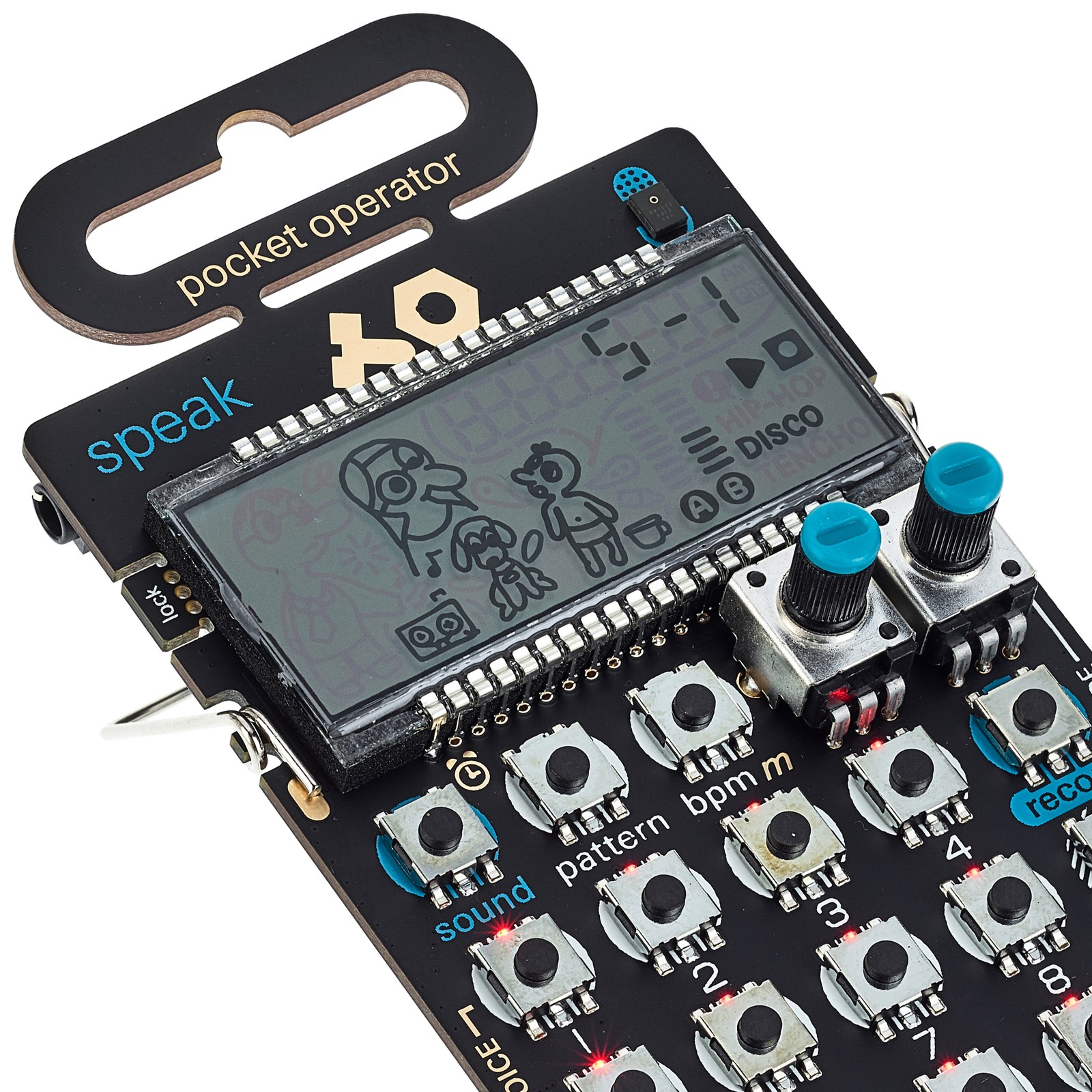 Die Pocket-Operator-Serie besteht aus einer Reihe von Minisynthesizern, Samplern und Drummaschinen, die über eine Sync-Kette untereinander und mit anderen Geräten verbunden werden können und sich so zu einem individuellen Setup zusammenstellen lassen. Die ultrakompakten Pocket Operators mit ihrem minimalistischen Platinendesign sind dank Batteriebetrieb und integriertem Lautsprecher mobil und autark zu betreiben. Der Sampler PO-35 Speak kann Sounds und Phrasen von Stimmen und Instrumenten aufnehmen. Im intuitiv zu bedienendem Sequenzer werden diese in Patterns programmiert. Mit den speziell auf Vocals abgestimmten Effekten lassen sich gesampelte Phrasen und Sounds schnell und effizient verändern.