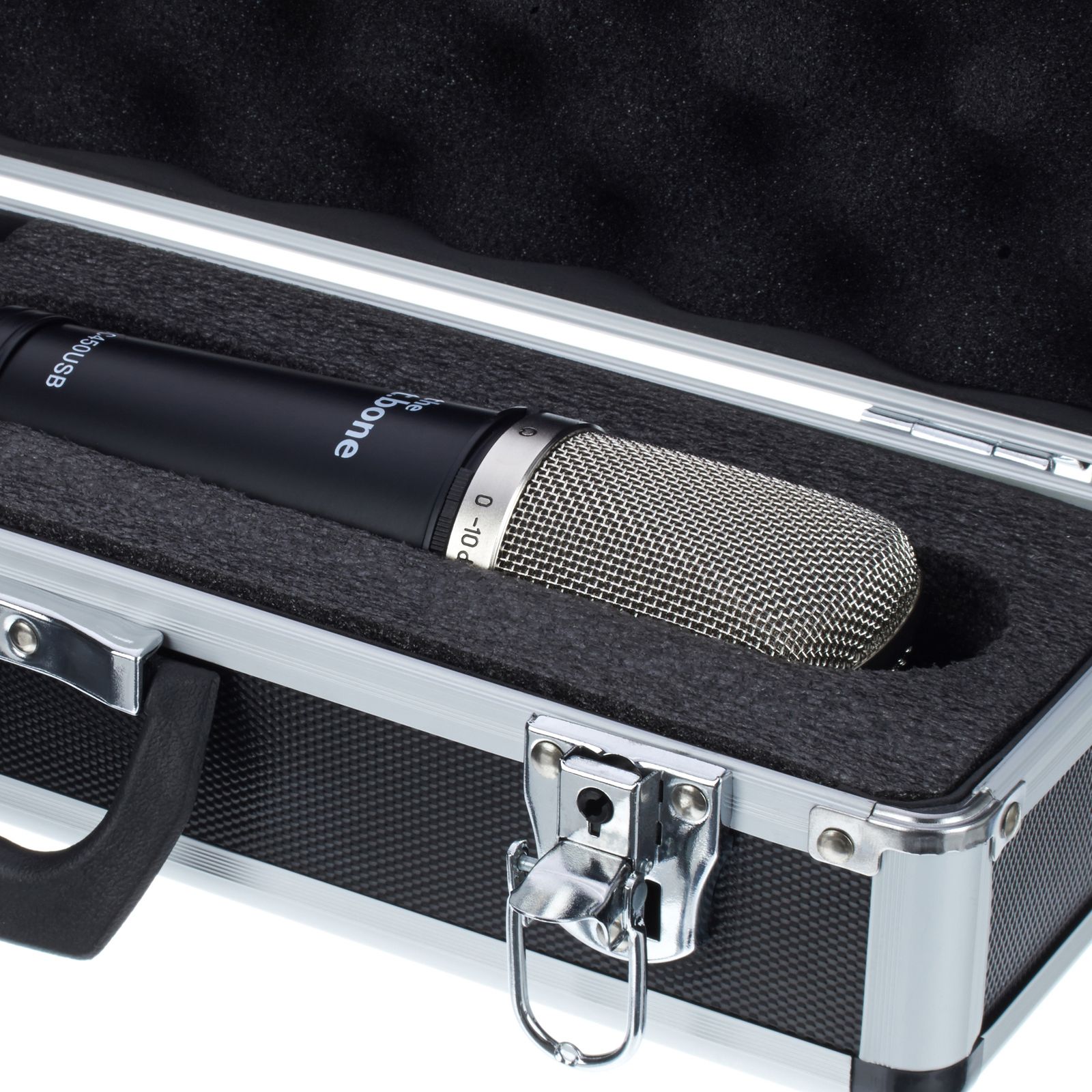 Ein Großmembran-Mikrofon ist der Grundstock eines jeden Studios. Egal, ob Vocals, elektrische oder akustische Gitarren, Percussion oder Schlagzeug aufgenommen werden müssen, ein guter Großmembraner ist nie fehl am Platz. Der Nahbesprechungseffekt hebt die Tiefen und Brillanz der Stimme hervor, je näher in das Mikrofon gesprochen wird. Dieser Effekt sorgt für die typische “Radiostimme” bei Sprechern und schillernde Höhen bei Sängern, was Großmembran-Mikrofone wie das SC 450 USB für diese Aufgaben zur ersten Wahl macht.