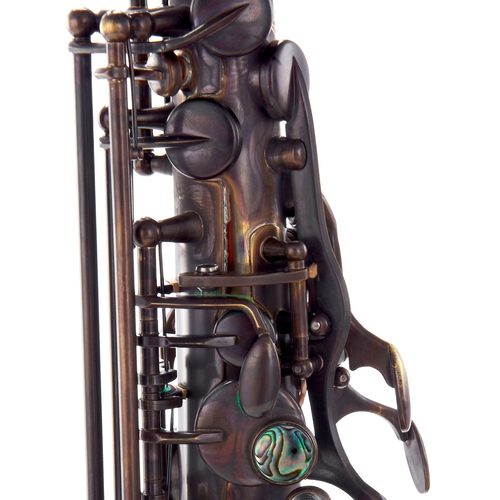 Das Thomann MK III Handmade Altsaxophon überzeugt aufgrund seiner ausgewogenen Intonation in allen Lagen und seiner sehr guten Ansprache. Gemeinsam mit dem unlackiertem Korpus sorgen die auf den Lederpolstern aufgesetzten Kunststoffresonatoren für einen warmen und kräftigen Klang. Korpus und S-Bogen bestehen aus Messing und wurden mit einer künstlichen Patina veredelt. Eine elegante Kunstgravur ziert sowohl den Korpus als auch den S-Bogen. Die echten Abalone Perlmutteinlagen in den Klappen sind ein wahrer Hingucker. Aufgrund seiner hochwertigen Verarbeitung eignet sich das MK III sehr gut als verlässliches Einsteiger-und Schülerinstrument. Im Lieferumfang sind ein Gigbag mit Rucksackgarnitur, ein Mundstück, ein Tragegurt und ein Putztuch enthalten.