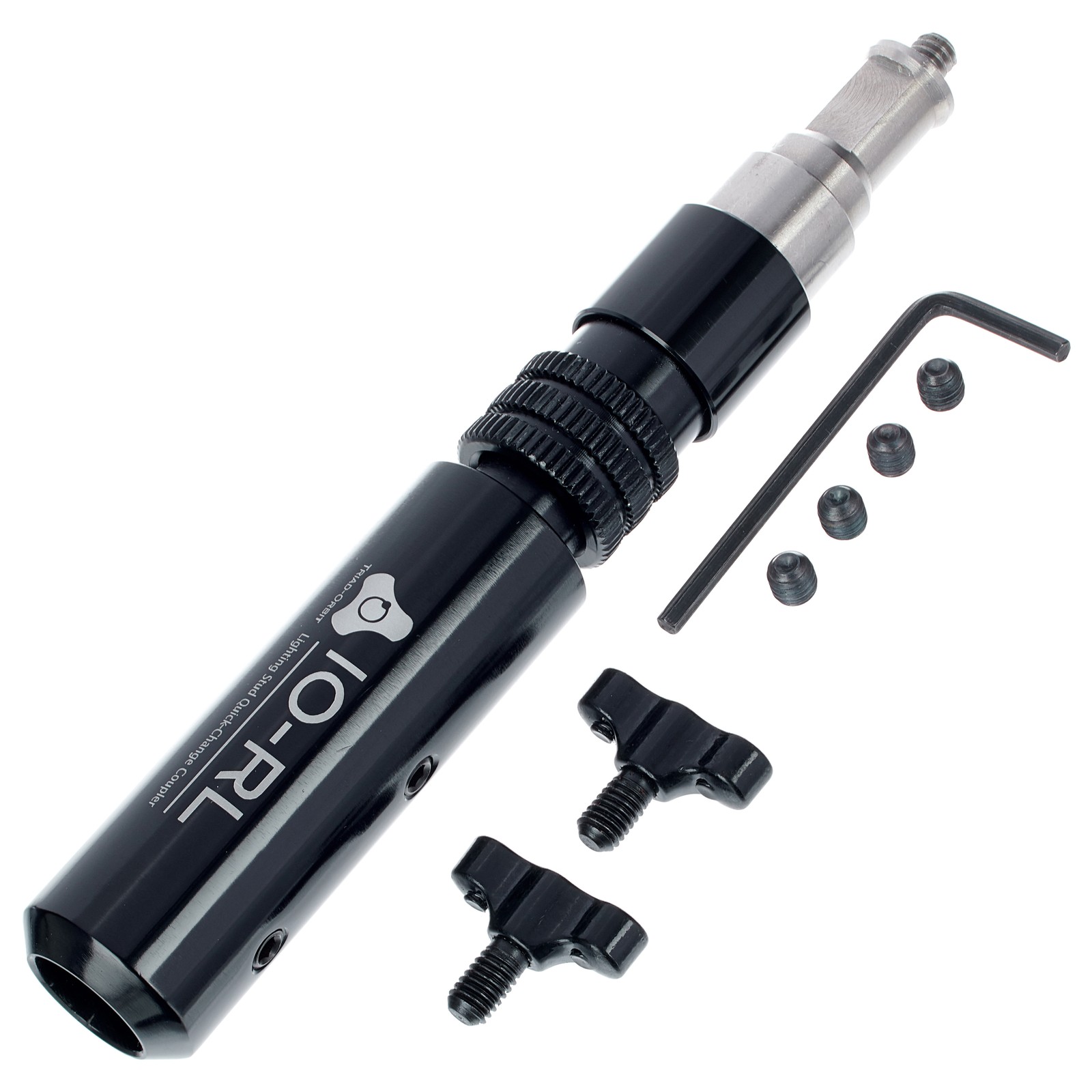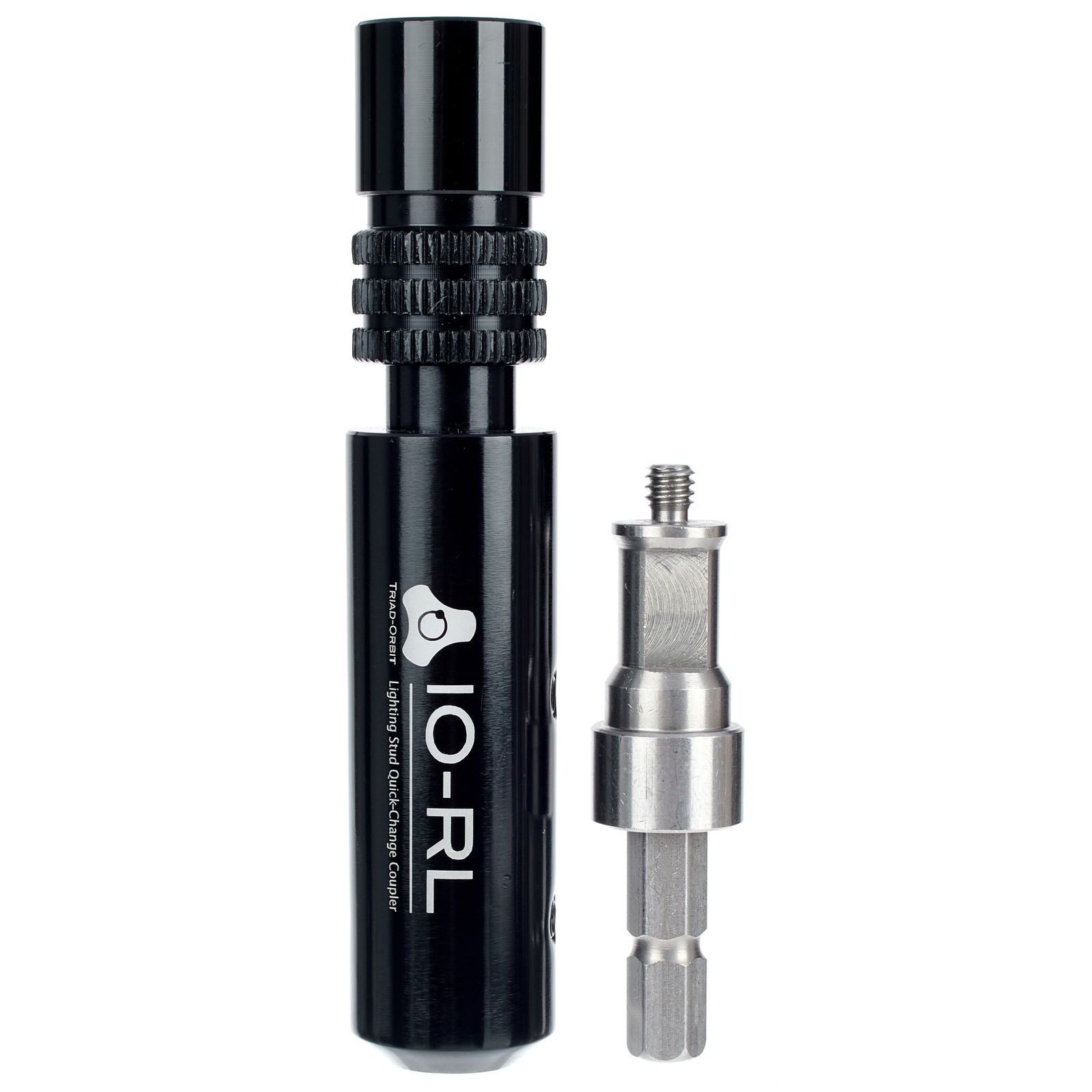 Die Triad-Orbit IO-RL ist ein Schnellwechseladapter für Beleuchtungsbolzen. Mit seiner Hilfe lassen sich Gerätschaften im Handumdrehen an Licht- und Kamerastativen anbringen. Der Adapter wurde speziell für die Bedürfnisse von Foto-/Videobeleuchtung entwickelt und ermöglicht das Wechseln von Scheinwerfern und Kameras ohne lästige Dreh-/Schraubverbindungen. Durch den Einsatz dieses Adapters können vorhandene Beleuchtungsstative zu Systemstativen umfunktioniert werden, auf denen Elemente des modularen Triad-Orbit-Systems eingesteckt werden können. Gängige Foto- und Videobeleuchtung lässt sich mit dem zum IO-RL gehörenden Sechskantkopf IO-H5 mit 1/4-Zoll-Außengewinde und seinem Standardbolzen mit 5/8″ Durchmesser befestigen. Dem IO-RL liegen auch zwei Sätze mit unterschiedlich langen Stellschrauben und ein Inbusschlüssel bei.