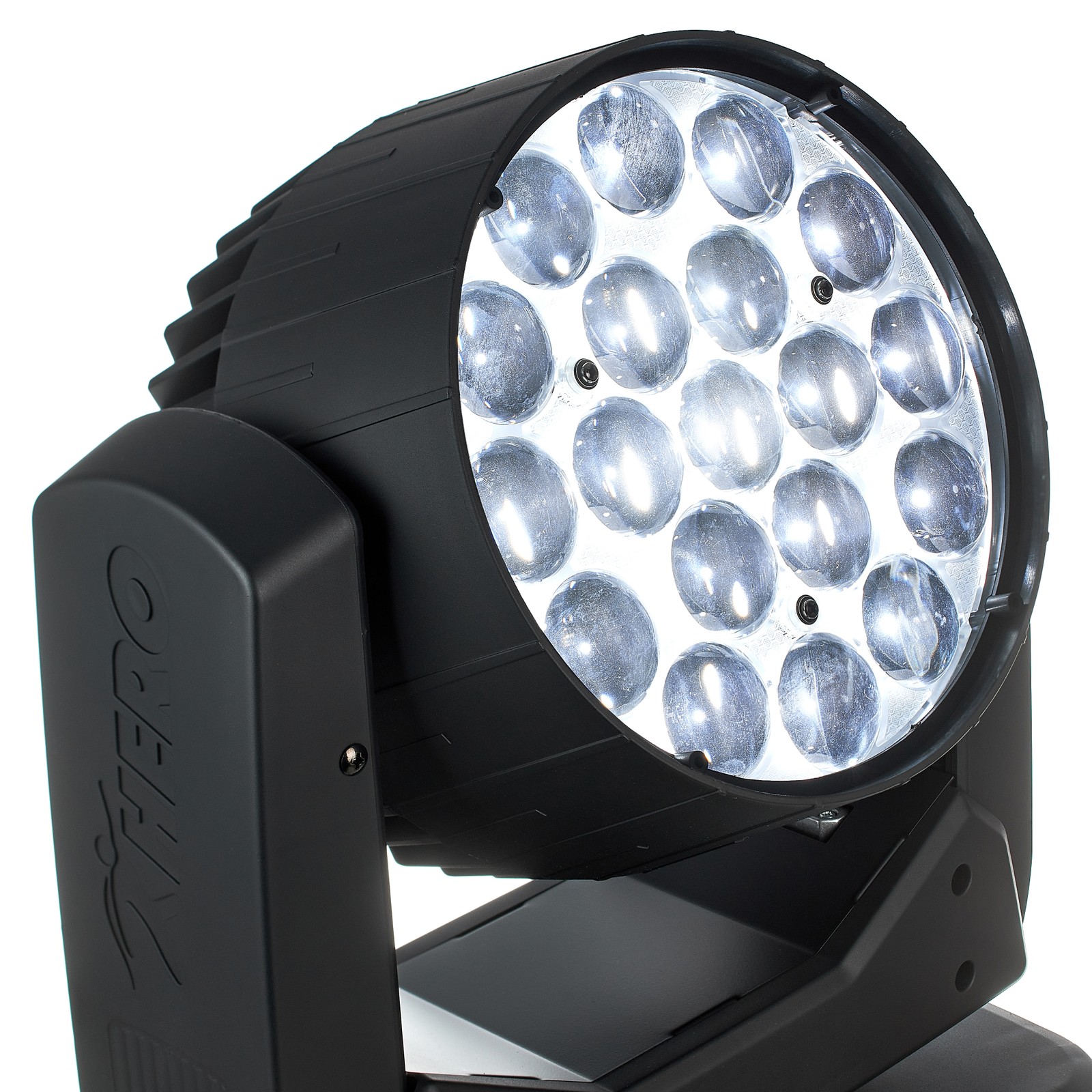 Er ist schon eine Seltenheit, der Varytec Hero Wash 300 TW. Alle Weißvariationen von kalt bis warm beherrscht er und kann sich dazu auch noch bewegen. Als Wash ist er ein Spezialist für sanft konturierte Lichtkegel, wobei sein Zoombereich zahlreiche Einsatzmöglichkeiten eröffnet. Mit welchen Aufgaben man ihn auch immer betraut… Flächen großzügig auszuleuchten, ist seine Kernkompetenz. Ebenso wie sein Baureihen-Bruder Hero Wash 300 FC hat er drei getrennt ansteuerbare Segmente, unterscheidet sich von ihm jedoch durch die Spezialisierung auf Weiß. Und leistungsstark strahlt er, was insbesondere beim Blick auf den kostspieligeren Martin Rush MH6 Wash CT hervorsticht, der jedoch einen leicht größeren Abstrahlwinkel und noch kälteres Tageslichtweiß kann. Damit man seine Leuchtkraft sieht, aber nicht hört, kann man drei unterschiedlich leise Lüftermodi zuschalten.