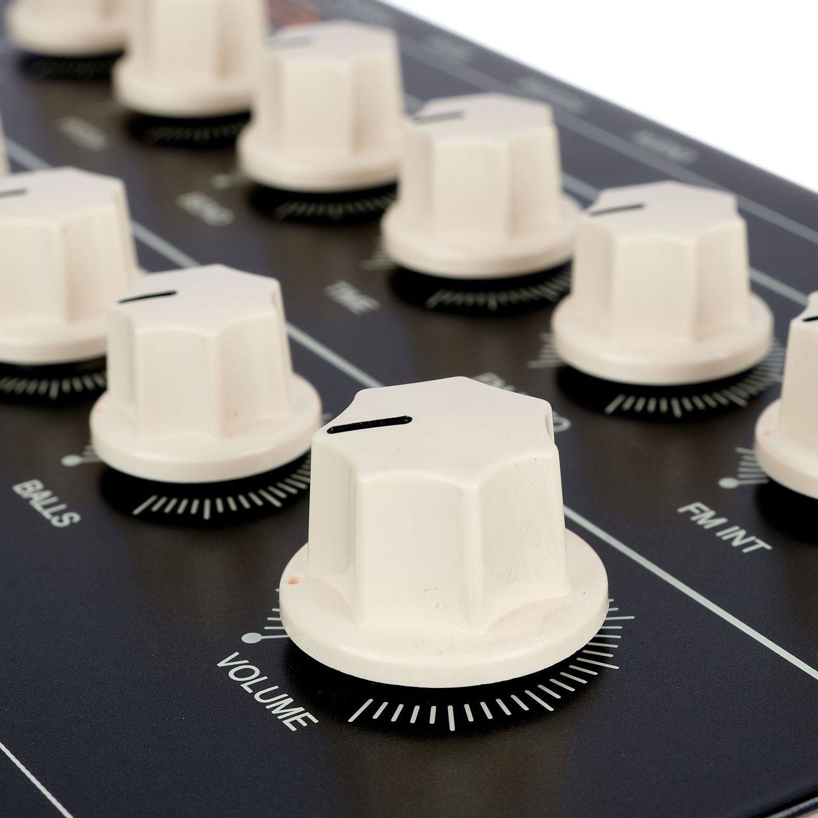 - Regler: Decay, Pitch, Bend, Time, FM Freq, FM Int, Attack, Noise, Wave und Balls