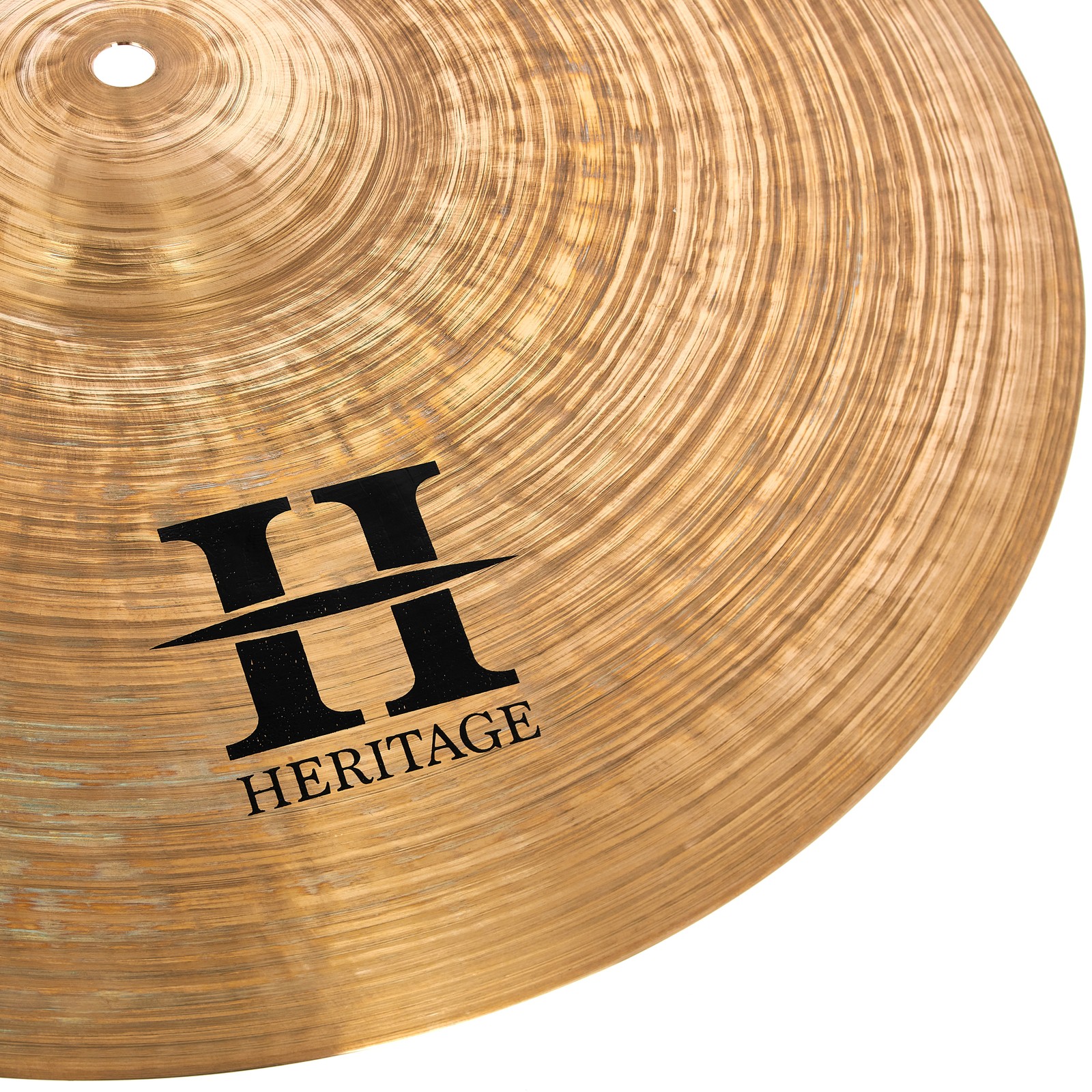 Die Becken aus der Heritage-Serie werden aus einer B20-Bronzelegierung gefertigt und bestehen somit aus 80% Kupfer und 20% Zinn. Mit ihrem verhältnismäßig geringem Gewicht lassen sie sich in die Medium-Thin- bis Thin-Kategorie einordnen. Der Klang zeichnet sich durch eine ausgewogene Mischung aus einem warmen Grundton und einem hellen und hochgradig definierten Stockanschlag sowie durch eine blitzschnelle Ansprache aus. So lässt sich das 16“-Heritage-Crash schon durch einfaches Anschlagen mit der Hand dazu bringen, einen reichhaltigen Sound zu entfalten.