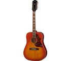 Epiphone Hummingbird 12 ACS; Westerngitarre, 12 saitig; Inspired by Gibson Square Shoulder Dreadnought; Decke massiv Sitka Fichte; Boden und Zargen massiv Mahagoni; Binding Decke 6 fach, Boden 4 fach; Hals Mahagoni, Rounded C; Sattelbreite 47,625mm (1,875"); Mensur 628mm (24,724"); 20 Bünde, Knochen Sattel; Griffbrett Indian Laurel; Binding Antique Ivory; Mother of Pearl Splitt Parallelogram; Grover Mini Rotomatic Mechaniken; Tonabnehmer Fishman Sonicore mit Regler Volume und Tone im Schallloch, Finish Aged Cherry Sunburst