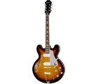 Epiphone Casino Vintage Sunburst; E-Gitarre, Hollow-Body; Korpus und Decke Ahorn Schichtholz; Binding Creme; Hals Mahagoni; klassische Sloped Dove Wing Kopfplatten Shape; Griffbrett Indian Laurel, Sattelbreite 43mm (1,693"); Mensur 628mm (24,724"); 22 Bünde; Sattel Graphtech NuBone; Griffbretteinlagen Mini Trapeze; Tonabnehmer 2x Epiphone Pro P90; LockTone Tuneomatic Brücke; Finish Vintage Sunburst; inkl. Gigbag