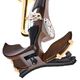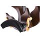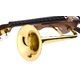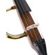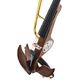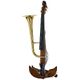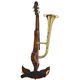 The Stroh violin is a combination of a violin and a trumpet that works according to the gramophone principle. The bridge stands on one side of a resonance membrane, which absorbs the vibrations of the bridge via a small metal pin. The resulting sound is then acoustically amplified in the trumpet bell.