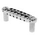 ABM 3024c Wraparound Bridge, separately adjustable intonation per string saddle, high quality version of milled solid brass, Incl. Brass Mounting Studs and Bushings, overall string spacing (E1-E6): 52 mm, Total length: 102 mm, Bolt spacing: 82 mm, total height: 13.5 mm, overall width: 22.5 mm, finish: High Gloss Chrome, made in Germany