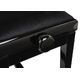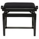 Thomann KB-107BM Piano Bench; Frame Colour: black polished; Double Cross Precision Lift Mechanism; tapped and glued; Height Adjustable from 45 to 57 cm; Seat Surface: 520 x 300 mm; Seat Cushion: Black Velour; Weight: 9 kg; Material: Wood, Suitable for Children and Adults; Additional Seat Cushions Available Separately