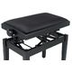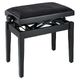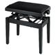 Thomann KB-77BM piano bench; frame color: black matt; double cross precision lifting mechanism; height adjustable from 50 - 61 cm; seat: 520 x 300 mm; seat upholstery: velor black; weight: 13 kg; material: wood; For perfect performance of the precision lifting mechanism, a user weight of 40-130 kg is recommended; Additional seat pads available separately